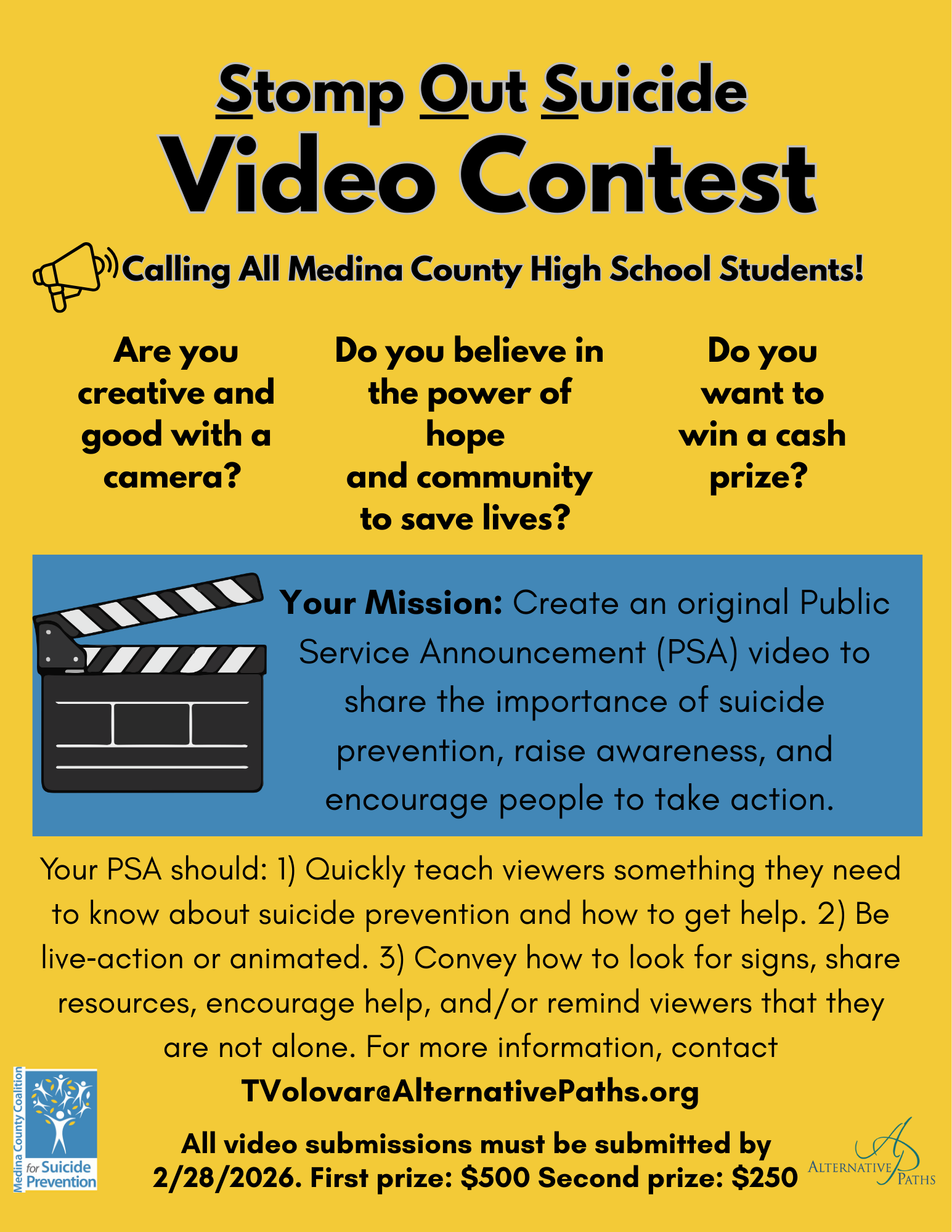 For questions about either contest, participation requirements, or materials, please contact Taylor Volovar at tvolovar@alternativepaths.org.